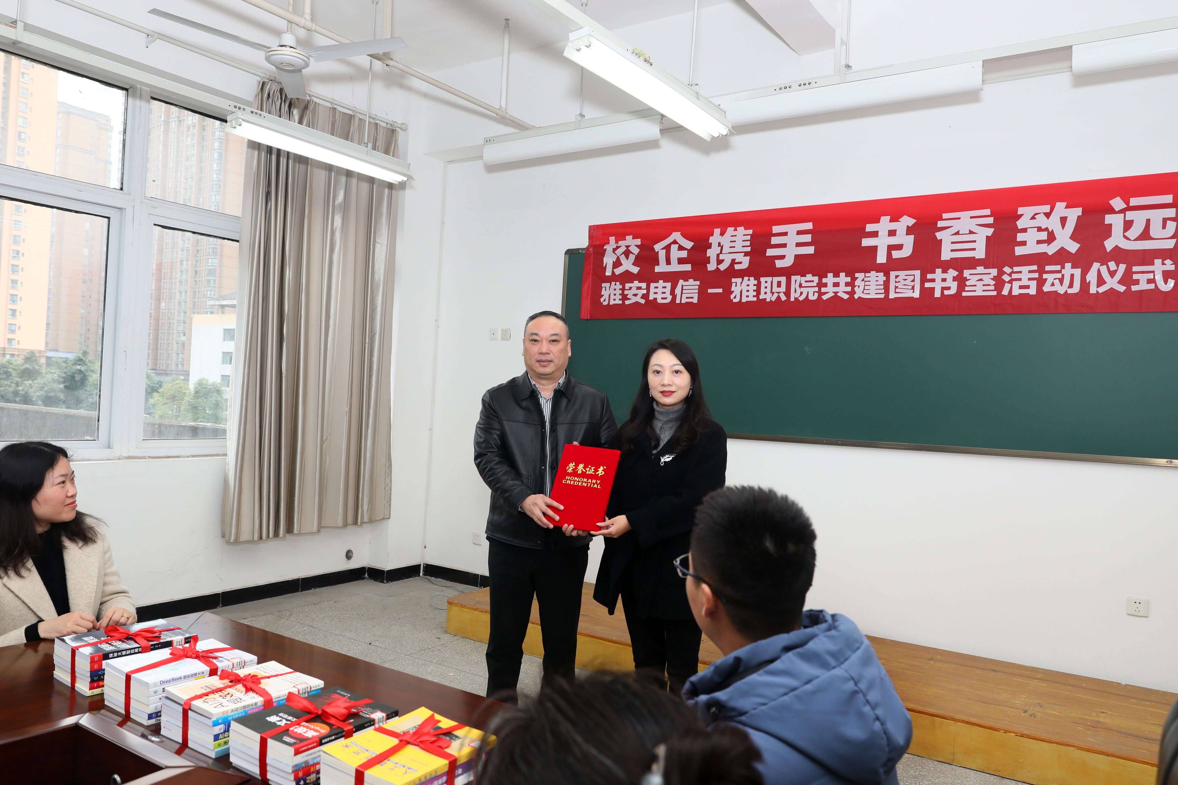 仪式伊始,樊正康代表学校全体师生向中国电信雅安分公司的善举表示由衷感谢。他在致辞中回顾了雅职院74年的办学历史与成就,指出书籍作为“人类进步的阶梯”在职业教育中的基石作用,并展望了学校建设高水平高职院校的奋斗目标。他希望以此次活动为契机,进一步拓宽与雅安电信在资源互补、产业服务、文化建设等领域的合作空间,实现校企共赢,共同为区域经济社会发展注入新动能。